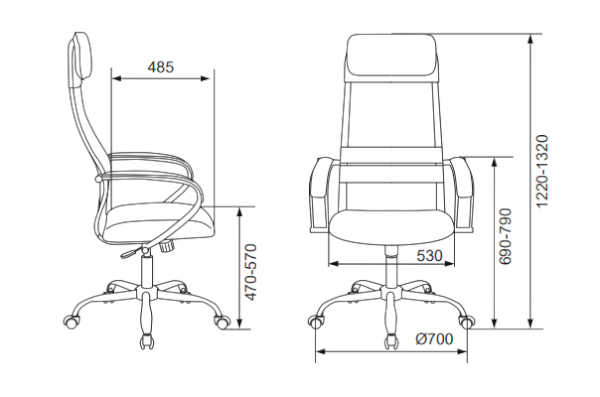 Высота с подлокотниками: 660-790