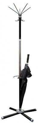 Вешалка напольная выполнена из оцинкованной стали с полимерным покрытием со вставкой из зеркальной нержавеющей стали. Данная модель вешалки идеально вписывается в интерьер современного офиса. Снабжена подставкой и деержателем для зонтов. Вешалка поставляется в картонной таре, в разобранном виде.