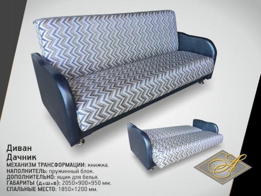 Диван Дачник-1 прямой подлокотник ткань (Асмана)