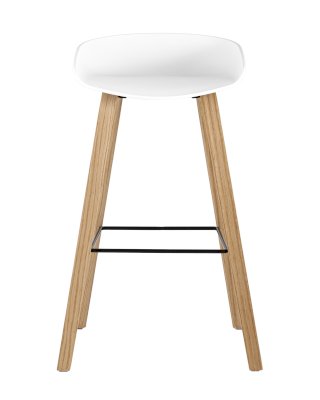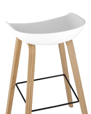 В дизайне модели «Либра» используется сочетание пластика и естественного оттенка натурального дерева – опоясывающая ножки опорная планка в тон сиденью уравновешивает цветовую комбинацию и подчеркивает модные геометрические формы барного стула. Высота мебели достаточна для стоек стандартной высоты.