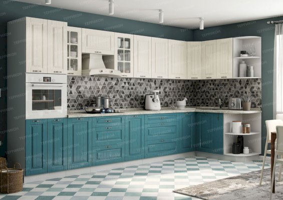 Модульный кухонный гарнитур Кантри роялвуд бирюза (Террикон)
