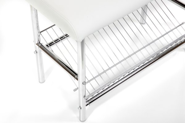 Металлический каркас устойчив к повреждениям, решетка под обувь не требует большого ухода, для уборки легко переставить обувницу и подмести пол.