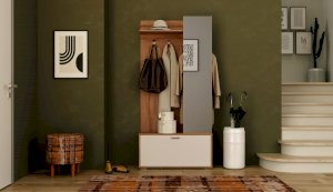 Прихожая Лайт компактна и вместительна, идеальное решение для помещений с маленькой площадью. В ней оптимальный набор модулей: вешалка с двумя крючками для верхней одежды и полкой для головных уборов, тумба для обуви с механизмом газлифт, который надежно фиксирует дверцу в открытом и закрытом положении. Скрытая за зеркальным полотном секция со штангой по вместимости заменяет небольшой шкаф. Зеркало не только служит декоративной ширмой, но и визуально расширяет пространство. Универсальный светлый дизайн в цветах дуба сономы и белого – верх элегантности и воздушности, который вписывается в прихожую любых размеров.
