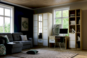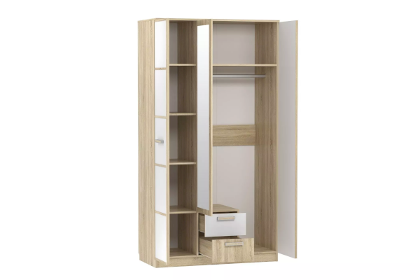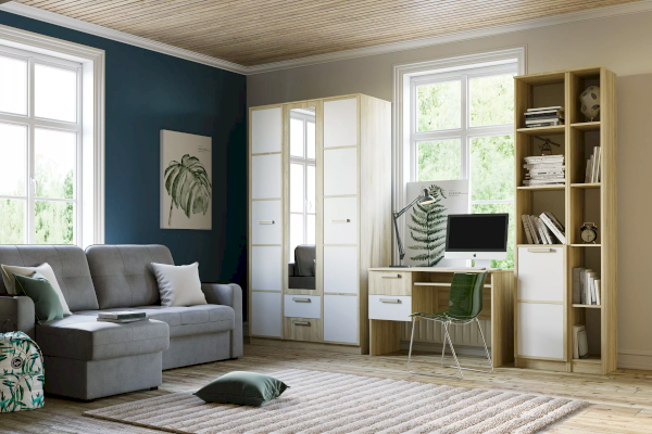 Шкаф комбинированный «Фанк» предназначен для тех, кто любит выдержанный стиль. Идеально для организации подростковой комнаты. А универсальный дизайн и цветовое решение подойдет как для мальчика, так и для девочки. Данный шкаф имеет компактные размеры, но, при этом многофункционален. Внутри модуля предусмотрены овальная штанга для одежды на вешалках, в том числе для размещения длинных вещей. Вместительная часть с пятью полками, позволит рассортировать и разместить большое количество вещей.  Два выдвижных ящика внизу идеальны для хранения мелкой одежды. Классические глухие фасады надежно защитят содержимое шкафа от влаги и пыли.