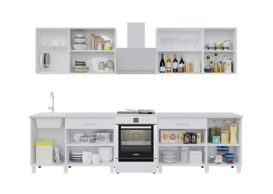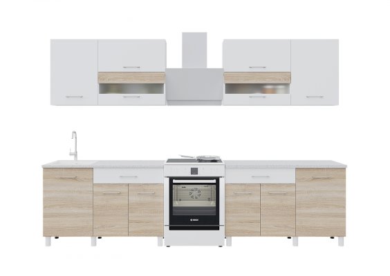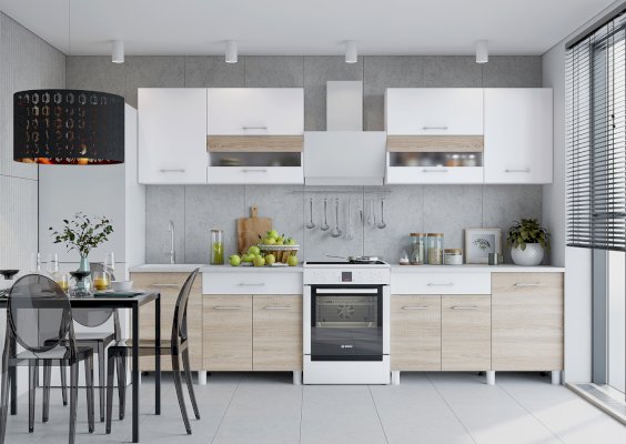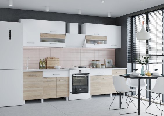 Объединяя два набора, размер кухни можно увеличивать и получать TREND 2400, суммируя наборы. Все кухни собираются в зеркальном исполнении.