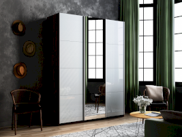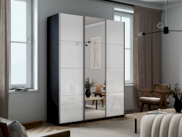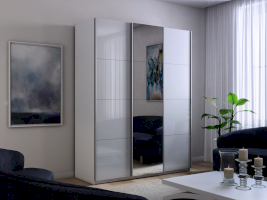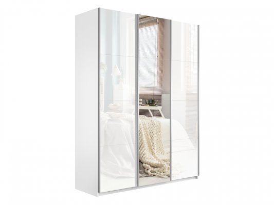 Шкаф-купе 3-х дверный Прайм Белое стекло/Зеркало/Белое стекло (Е1)