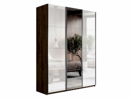 Шкаф-купе 3-х дверный Прайм Белое стекло/Зеркало/Белое стекло 1800х2300х570 мм Венге
