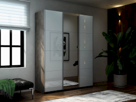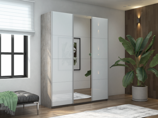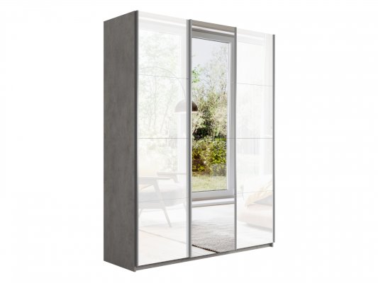 Шкаф-купе 3-х дверный Прайм Белое стекло/Зеркало/Белое стекло 1800х2300х570 мм Бетон