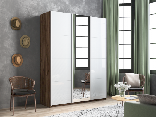 Серия «Прайм» отличается доступностью и функциональностью Навесные двери и лаконичная отделка фасадов создают прогрессивный дизайн. Подойдет тем, кто любит компактную и изящную мебель. Алюминиевые ручки и верхний ходовой профиль обеспечивают легкость и прочность конструкции. Многолетняя безупречная работа благодаря высококачественной немецкой фурнитуре Hettich. Прочная ПВХ-кромка толщиной до 1 мм защищает края от сколов и повреждений. Плавный ход дверей обеспечивает надежная система Hettich Top Line M. Дополнительно можно установить доводчики. Снаружи нет заглушек и винтов благодаря стяжечной системе крепления полок на флипперах, а корпус усилен эксцентриковыми стяжками. Навесные двери скрывают раздвижной механизм от глаз. Они надежно удерживаются в направляющих и не соскакивают. Каждая дверь поделена на 4 секции Секции расставляются в произвольном порядке, создавая новый дизайн фасада.