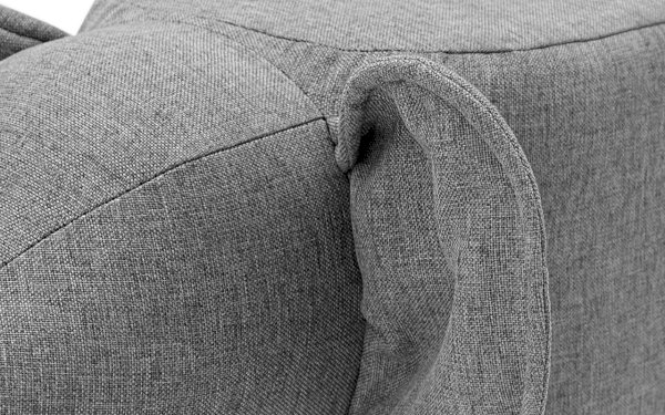 Пуф обшит прочной и экологичной рогожкой серого цвета. Материал натуральный, приятный на ощупь, устойчив к загрязнениям.