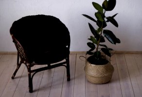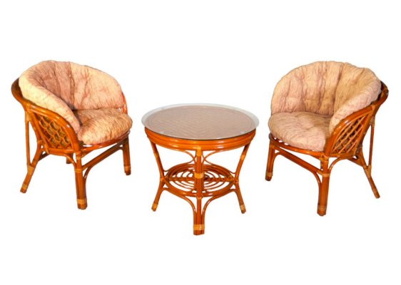 Удобное кресло из натурального ротанга с мягкой подушкой.