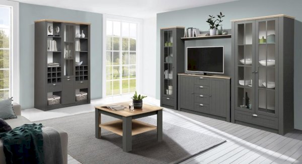 Этот шкаф взял в себя все самое лучшее от модуля 37.05 и 37.04. Витражный фасад, выдвижной ящик – такие же, как в комбинированном шкафу 37.05, а вот по размерам он полностью повторяет пенал 37.04. Таким образом мы получаем стройный, изящный и компактный шкаф-витрину. Комбинированным его называют не зря, так как у него есть и полки, и выдвижной ящик. Он хорошо смотрится как отдельно, так и вместе со своим братом-близнецом – пеналом. Внутри находятся четыре полки из ЛДСП, каждая из которых выдерживает вес до 5 кг. Внизу расположен выдвижной ящик – миниатюрный, но вместительный.
