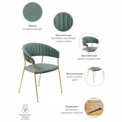 Мягкие спинка и сидение, оригинальный каркас и опоры с декоративным эффектом технологии золочения хромированных деталей.