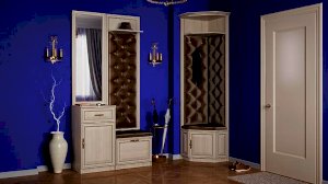 Вешалки и тумба для обуви обшиты велюром в стиле каретной стяжки.