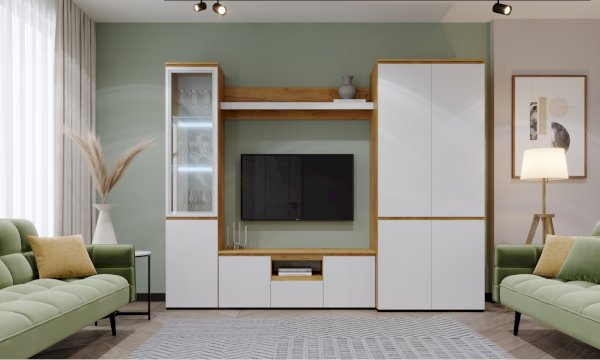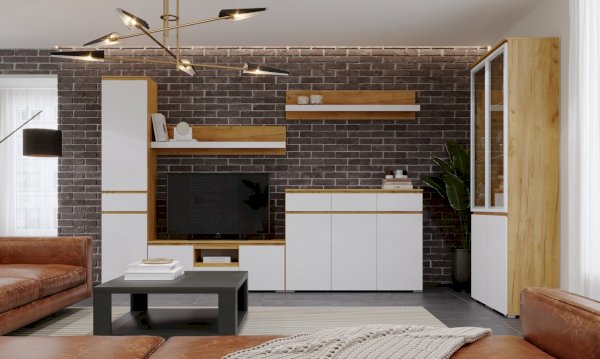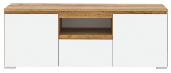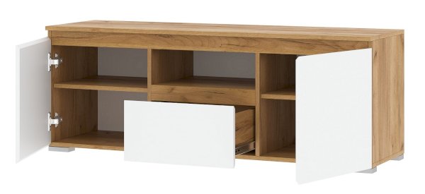 Применение интегрированной ручки на фасадах делает модель стильной и безопасной – дверцы и ящик открываются за профилированные выступы. Фасады обработаны кромкой 1 мм.